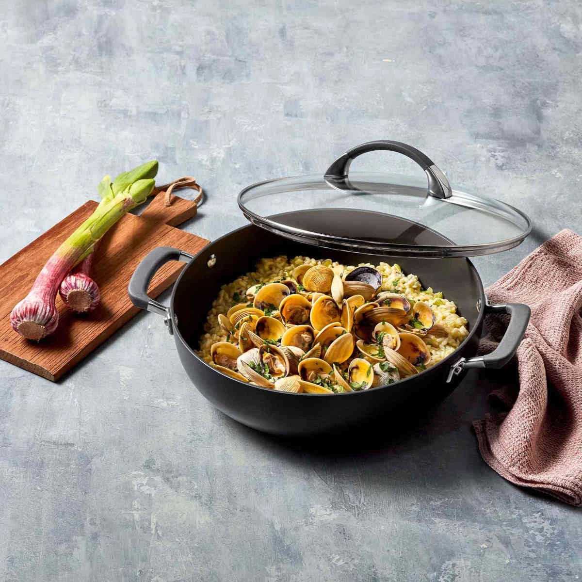 This Anolon Endurance+ Covered Casserole offers exceptional heat conductivity and distribution with a twice-as-hard hard-anodised construction. The premium nonstick coating provides easy food release and simple cleaning, and its riveted handles offer strength and durability with comfortable SureGrip™. Suitable for all cooktops including induction, and oven safe to 200°C.