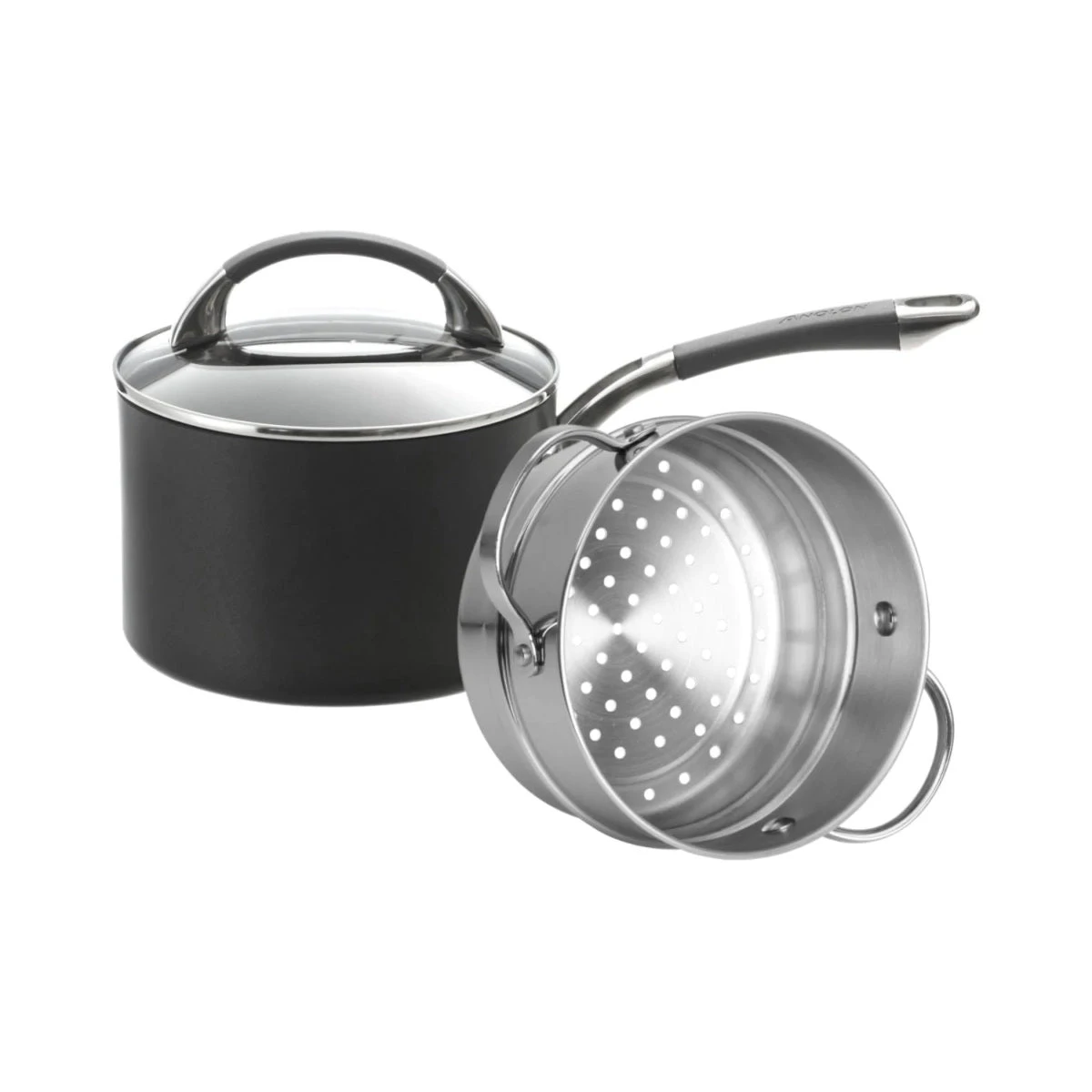 Cook a variety of dishes with the Anolon Endurance+ Saucepan and Steamer Set. Featuring a 2.8L covered saucepan and steamer insert, you can steam vegetables, fish, beef, and pork with ease. The versatility of the set provides you with the choice to use the saucepan alone for a variety of other dishes.