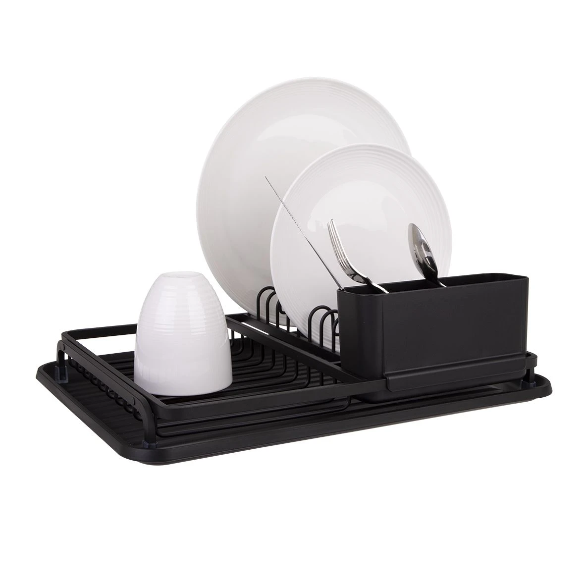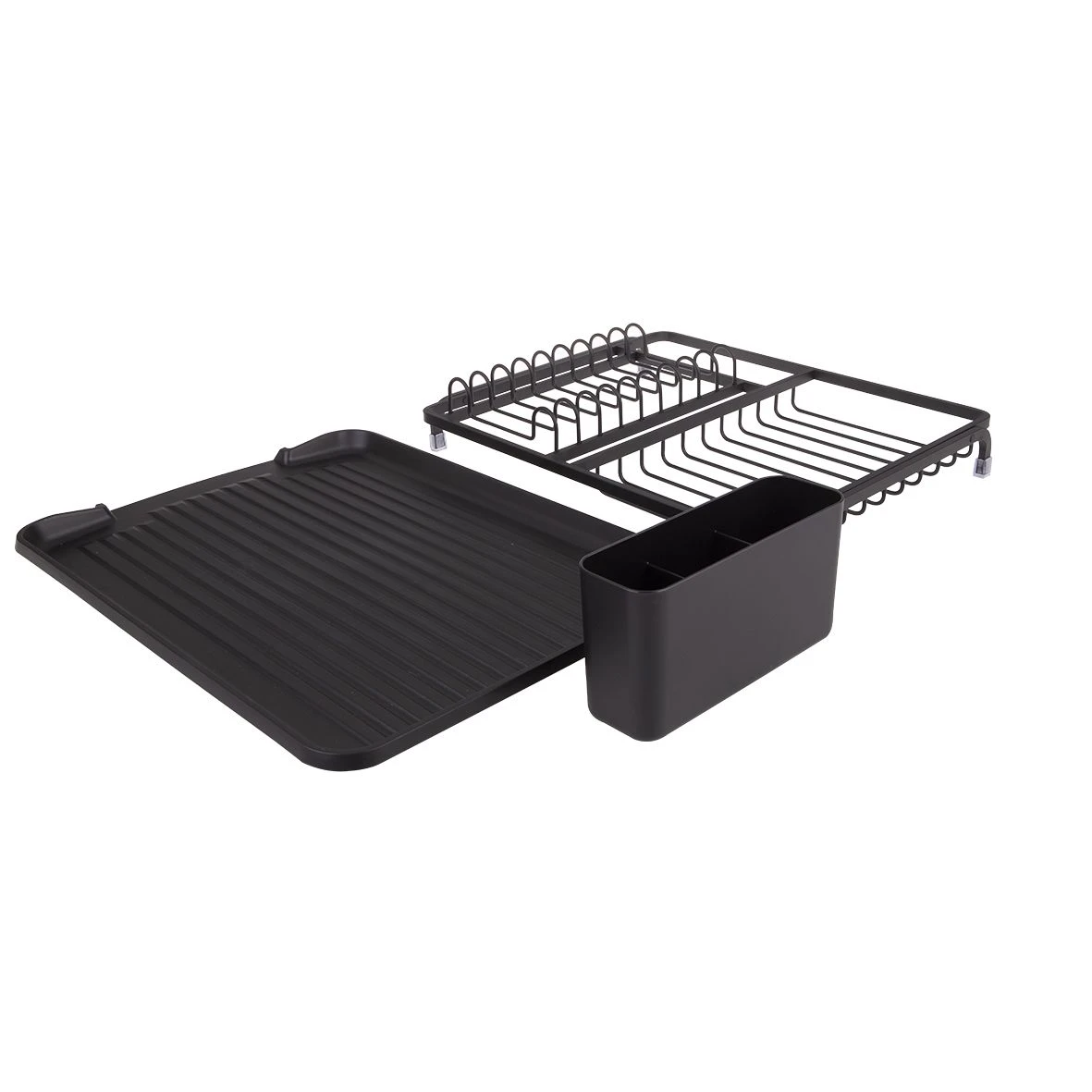 Designed to let you arrange plates, bowls, glasses, and cutlery for quick drying, it also comes with a cutlery drainer and the angled draining board is removable for thorough and easy cleaning.