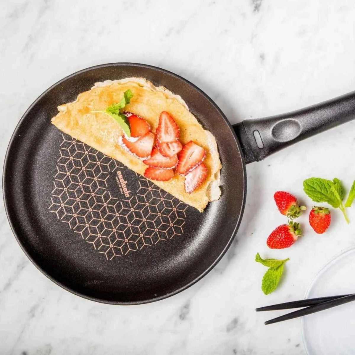 The Essteele Per Salute Crepe Pan 25cm combines diamond-hard nonstick durability with innovative Thermotech technology for convenient, solution-driven cooking. This pan is perfectly shaped for sliding crepes to your plate effortlessly, and the nonstick coating ensures easy clean-up after. Enjoy perfectly cooked crepes every time.