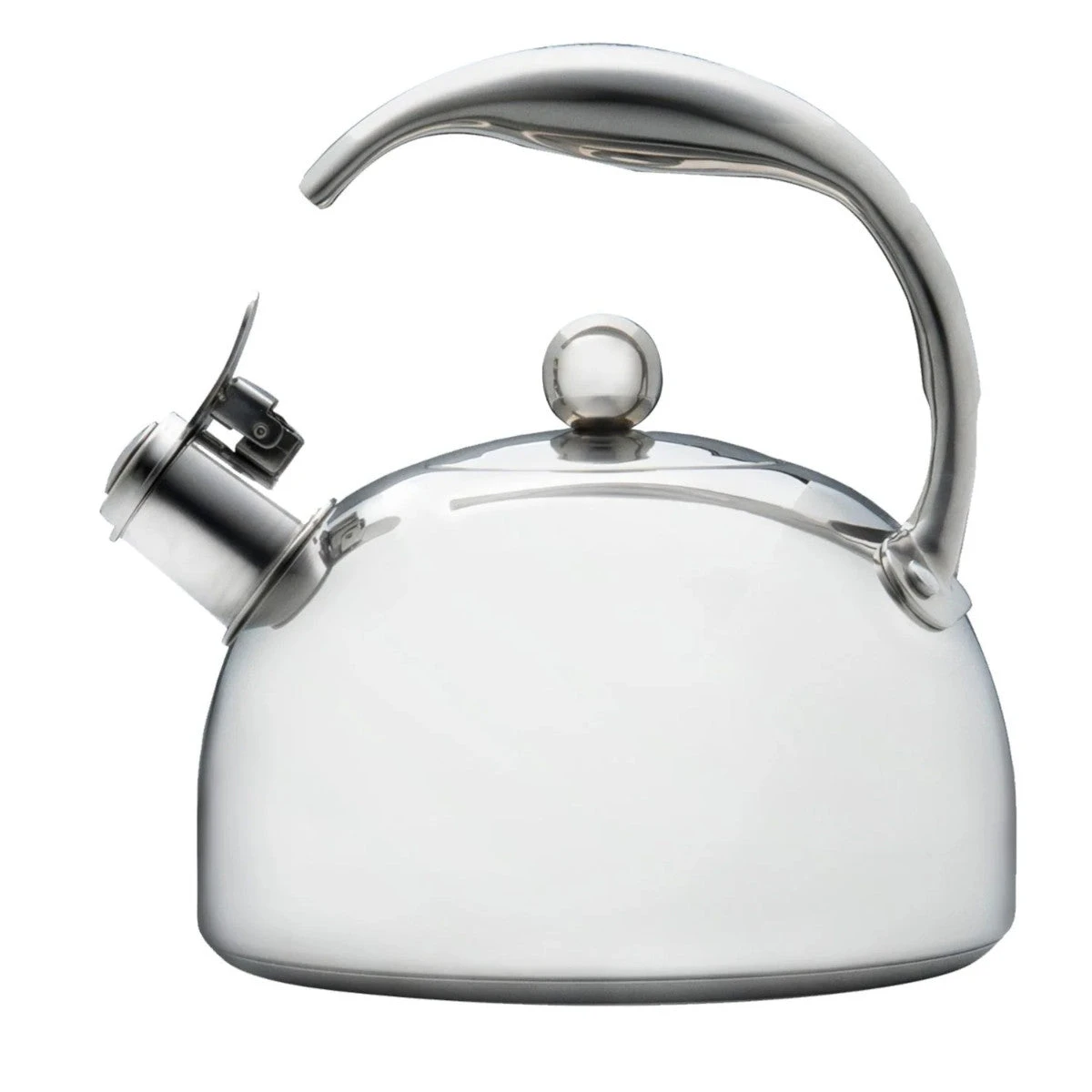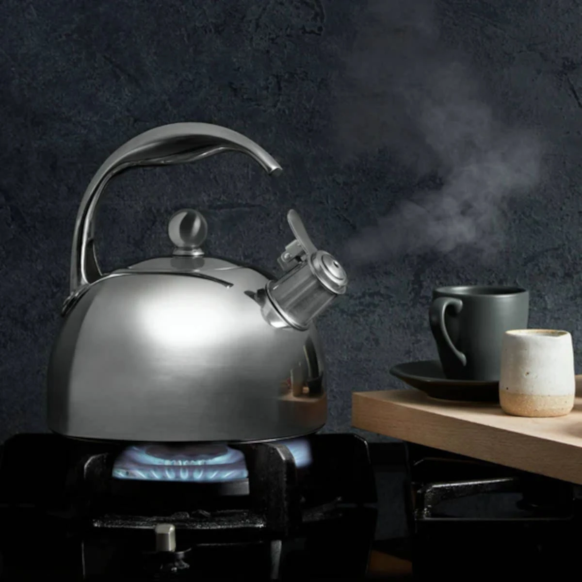 Crafted with top-quality stainless steel to ensure durability and a lustrous, sophisticated shine, our kettle features a whistle that promptly alerts you when your water has reached a rapid boil. With its timeless design, this kettle will make a statement on any stovetop and become a staple in your kitchen for years to come.
