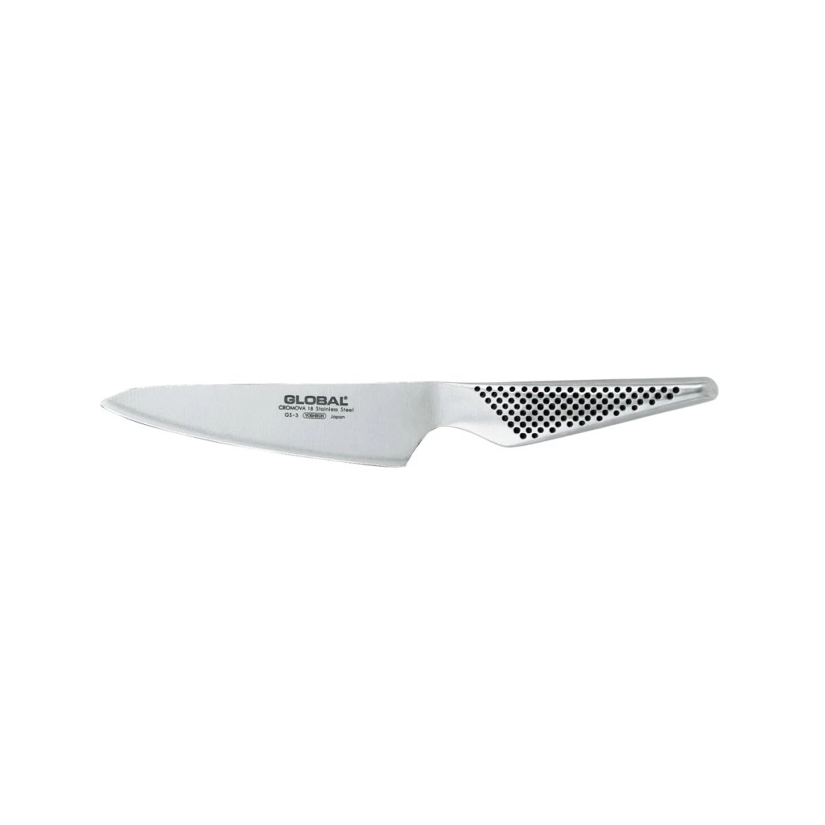 The Global Classic Cooks Knife 13cm is one of our best-selling knives. It’s perfect for chopping, slicing and dicing, and it’s useful for both vegetables and meat. Made in Japan from Cromova 18 stainless steel, this knife is razor-sharp, resists rust and stains, and has excellent edge retention. It’s also carefully weighted for balance and comfort, with smooth contours and seamless construction to eliminate trapped food and grime. Hand wash only.