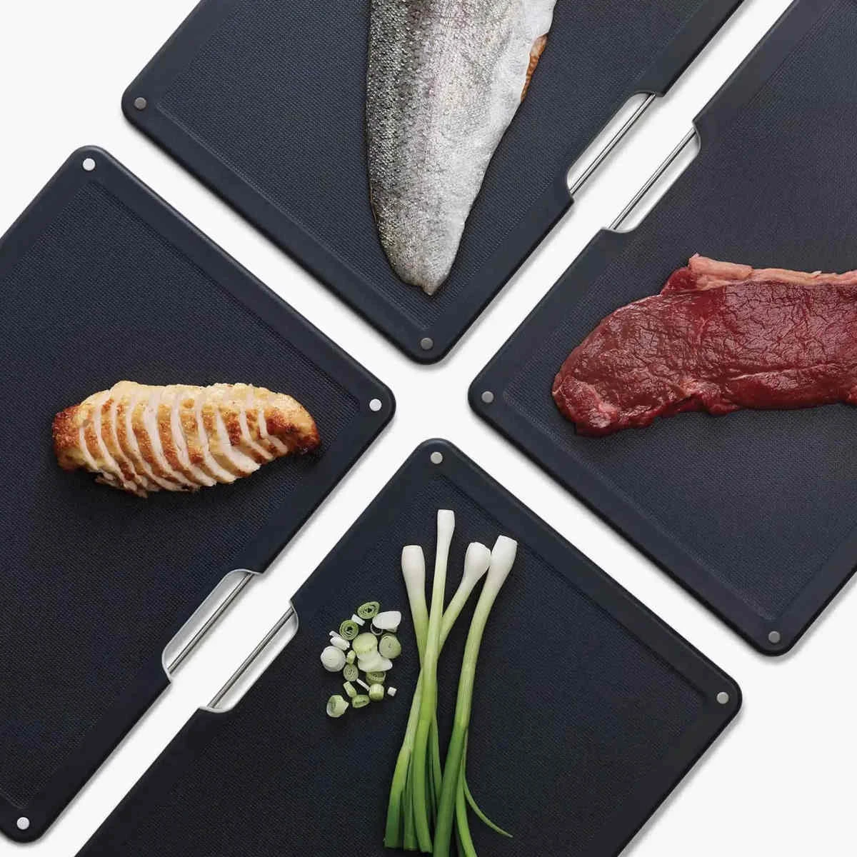 - Four chopping boards with non-slip feet