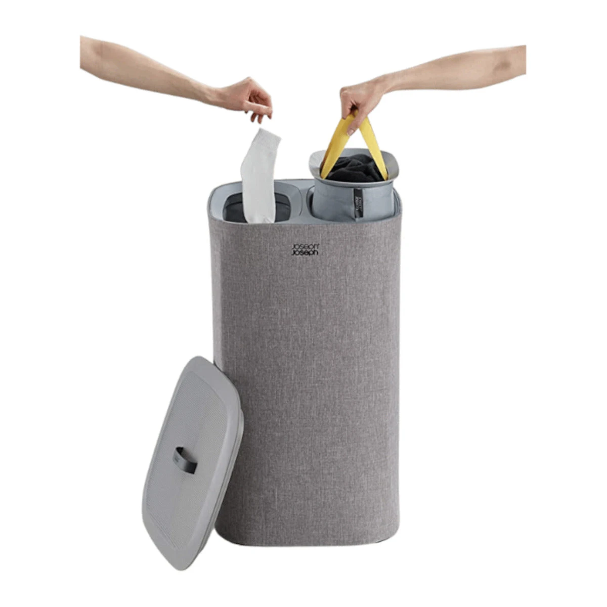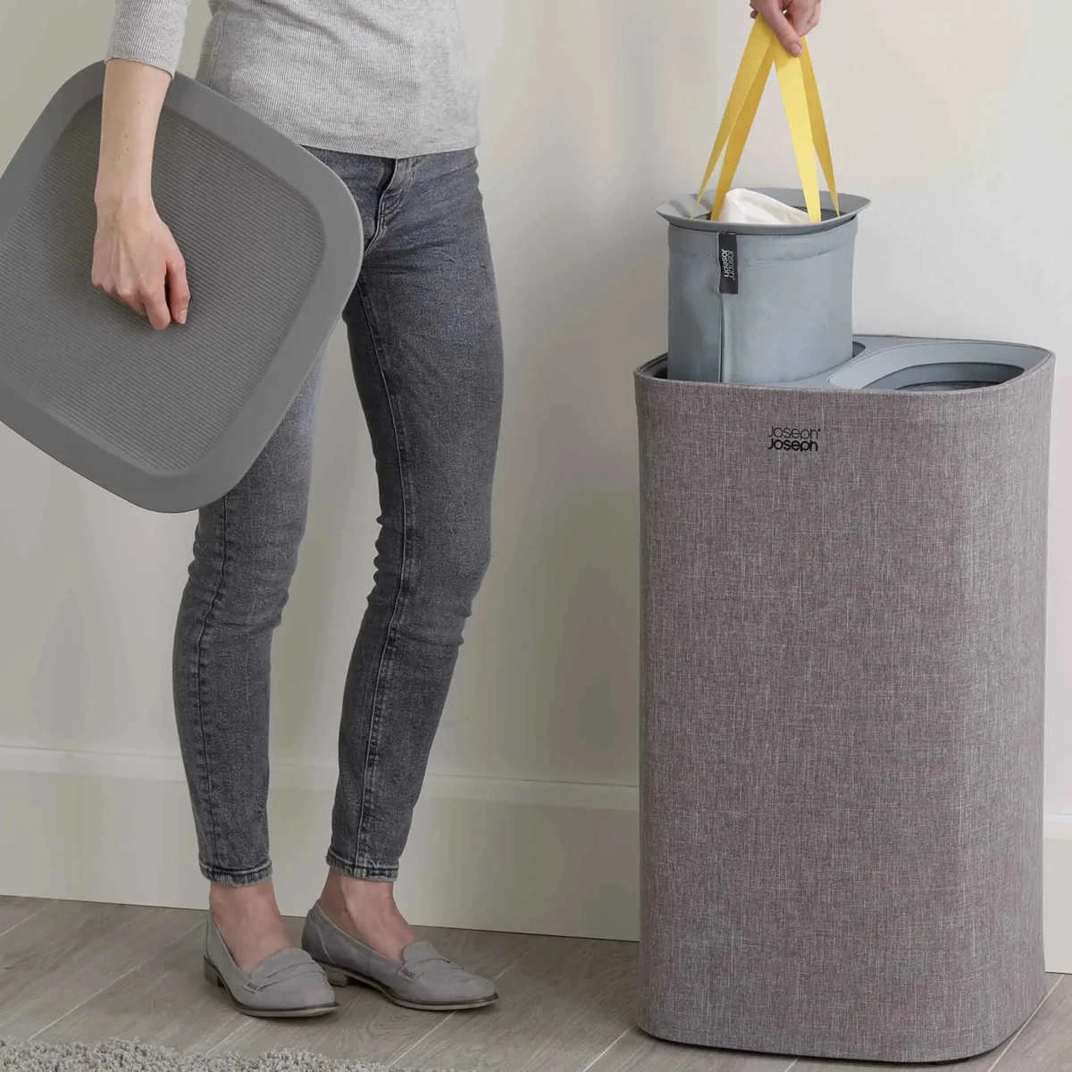 Say goodbye to laundry day blues with the Joseph Joseph Tota Laundry Separation Basket. This smart and stylish basket is designed with dual compartments and removable, easy-carry tote bags, so you can quickly and easily separate clothes and carry heavy loads to the washing machine. Tota also looks great in the bedroom, bathroom or utility room, adding a touch of style to your home.