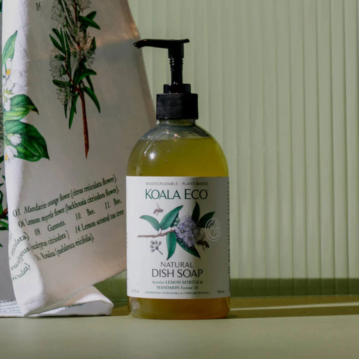 - Backhousia Citriodora (Lemon Myrtle essential oil) and Citrus Reticulata (Mandarin essential oil), Aqua (filtered water), Plant-based biodegradable surfactant, plant-based biodegradable solubiliser.