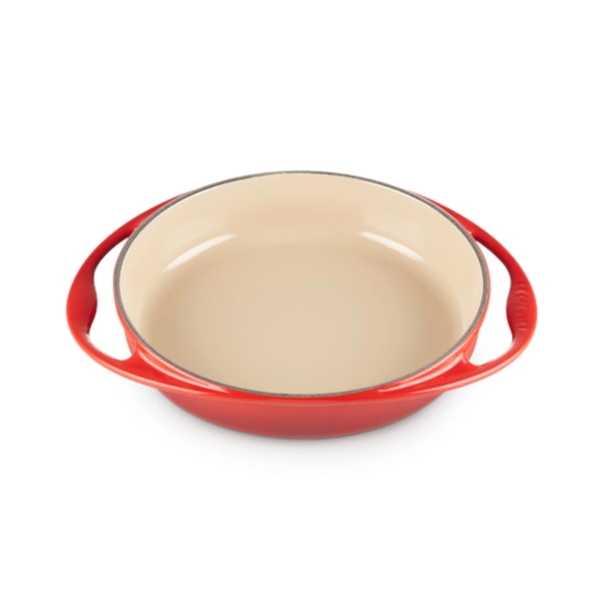 This beautiful piece of cookware is not only perfect for making the traditional apple Tarte Tatin, but also for baking gratins, quiches, and desserts. The wide handles make for an easy grip, and the sturdy construction distributes heat evenly and releases food quickly. The light enamel interior even helps to make cleaning easier.