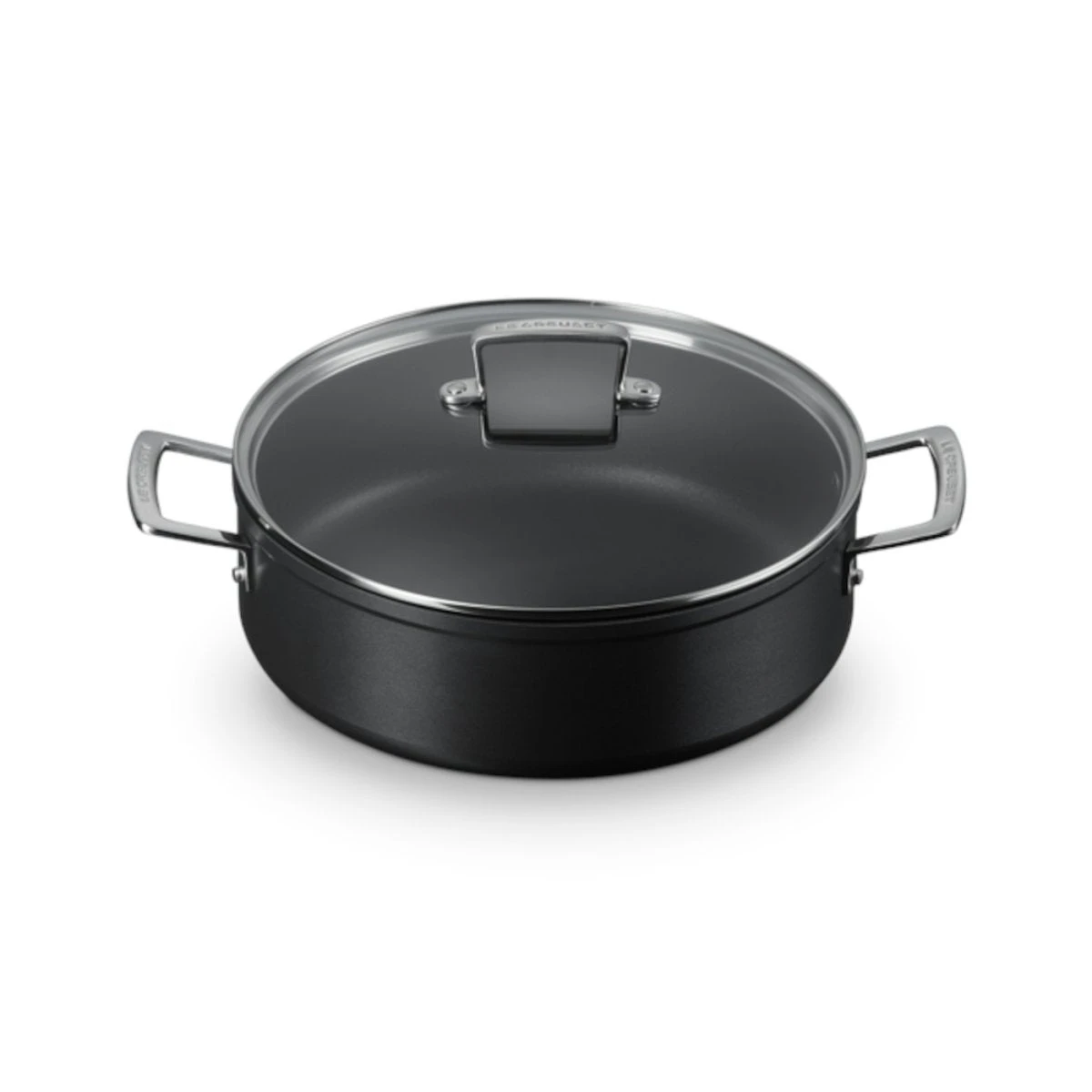 This strong Le Creuset Toughened Non-Stick Sauteuse is an all-purpose kitchen star. Use it on the stove or in the oven, plus as an oven roaster or baking dish. Its deep sides prevent messes, and its hardy interior can handle metal utensils. Serve directly from the pan and enjoy!