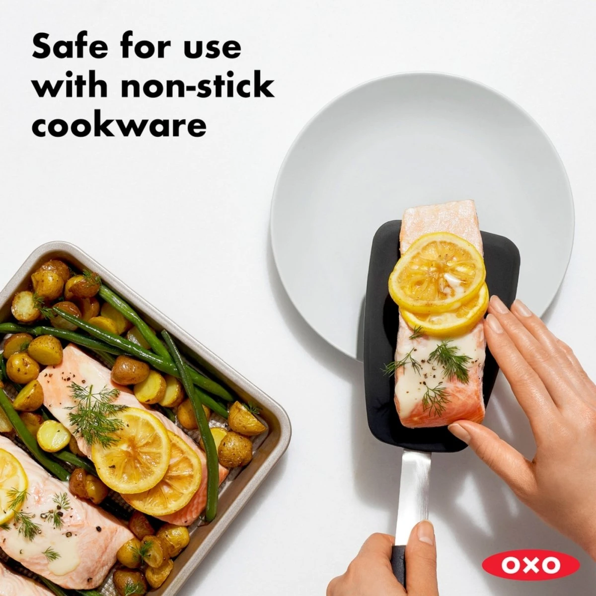 The OXO Good Grips Silicone Everyday Flexible Turner is the perfect tool for flipping burgers, chopping ground beef and lifting cookies without crumbling.