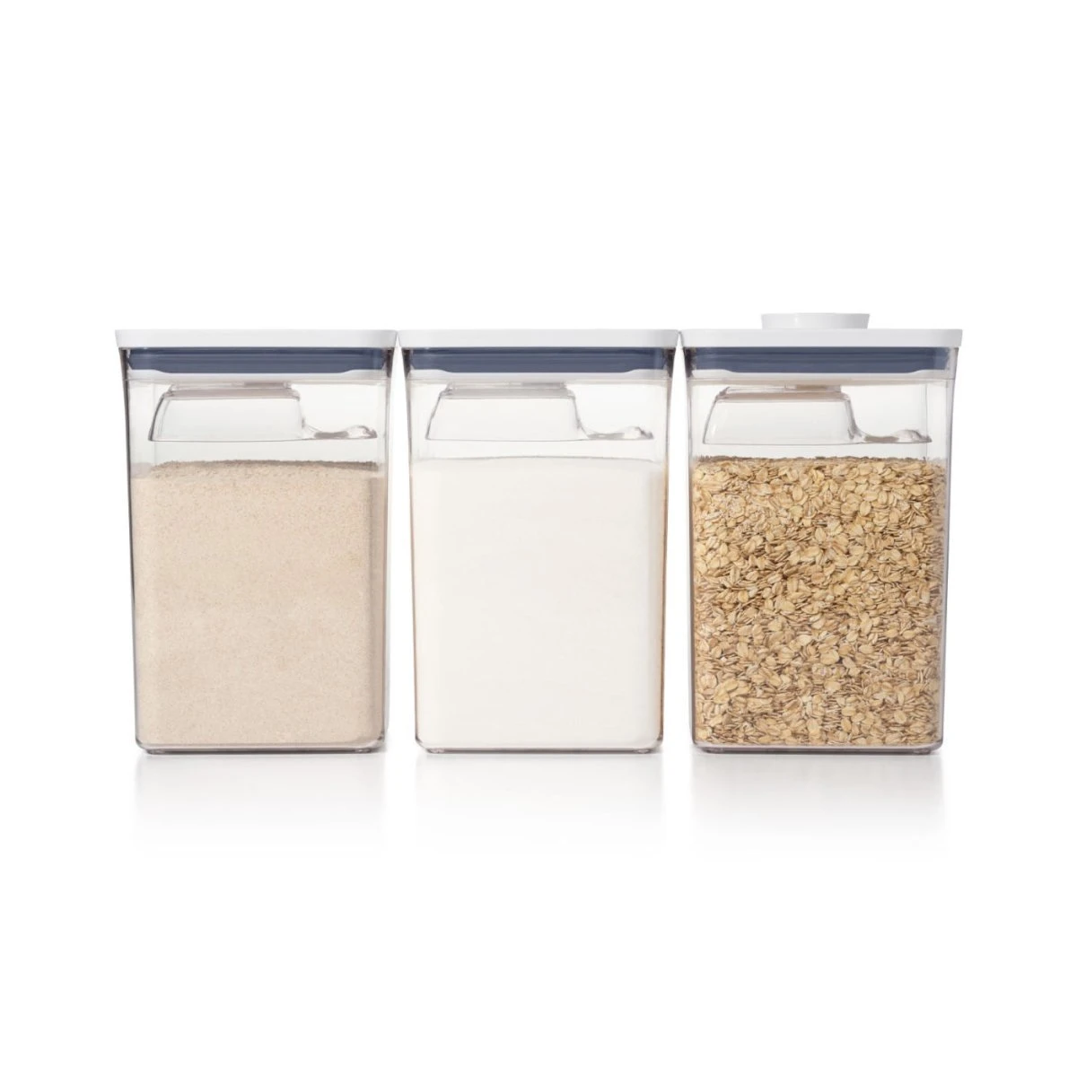 - OXO Good Grips 6-Piece POP Container Bulk Set is airtight, stackable, space-efficient and now dishwasher safe, making it easy to keep your dry foods fresh and your pantry organized
