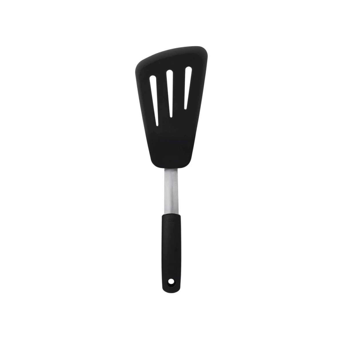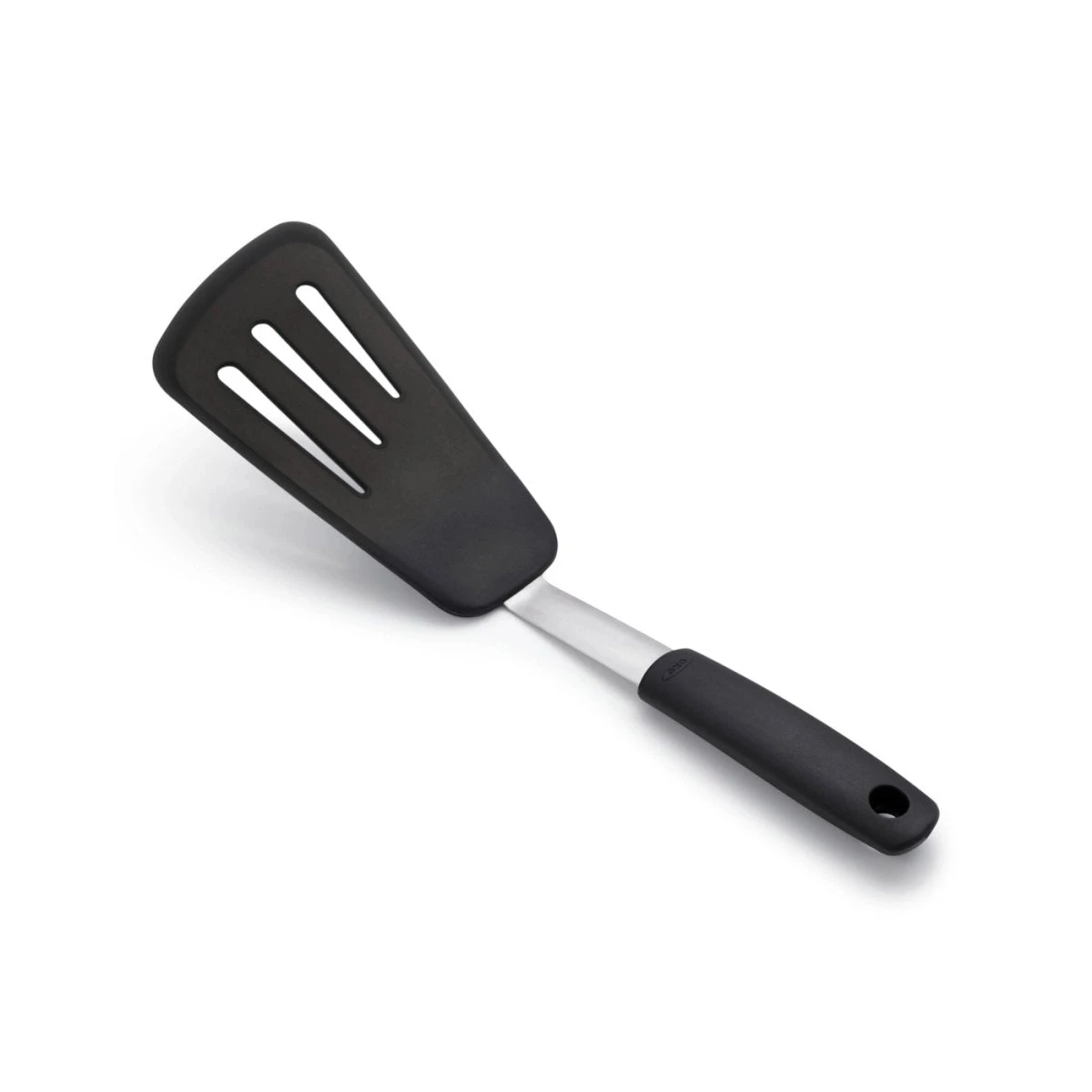 Durable, non-stick-safe turner flips omelets with ease. Our Silicone Flexible Turners combine the strength of stainless steel with the heat resistance and non-stick friendliness of a silicone outer layer. Thin, flexible edges glide under foods in the pan to keep them intact. The Omelet Turner is ideal for flipping longer, delicate foods.