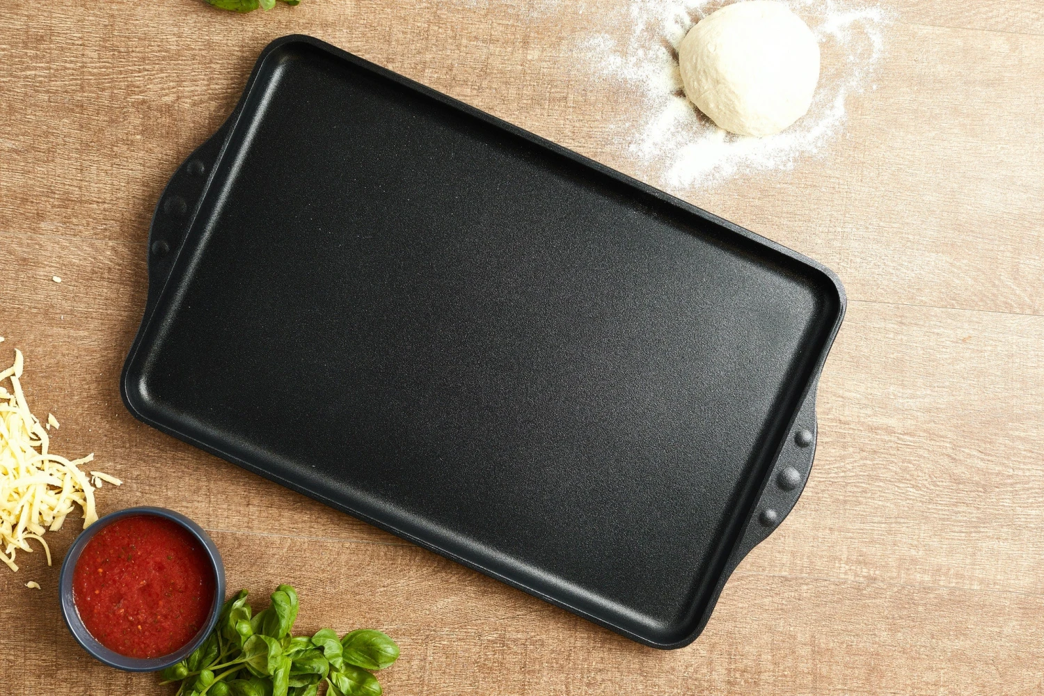 Swiss Diamond XD enhances this pan by improving the seal between the cooking surface of the pan and the aluminum base, creating a tougher, more corrosion resistant layer. Heat will spread evenly over the entire 17 x 11 inch cooking surface – with no hot spots. Looking for a premium quality baking sheet to add to your kitchen collection? No need to buy an extra when you have this pan. It doubles as a superior quality baking sheet, allowing you to finish those drop biscuits or sugar cookies in the oven (up to 500°F) and they will slide right off when cooled. Made in Switzerland.