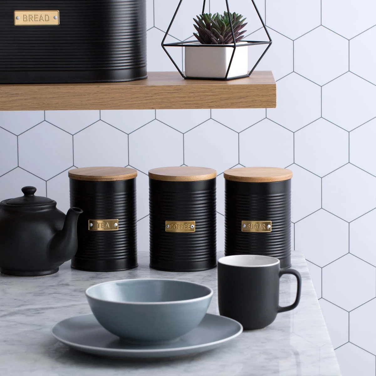 - Fill your counter with other matching storage pieces from the Typhoon Living Otto Black collection
